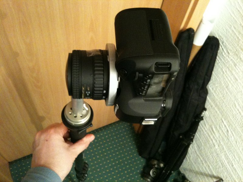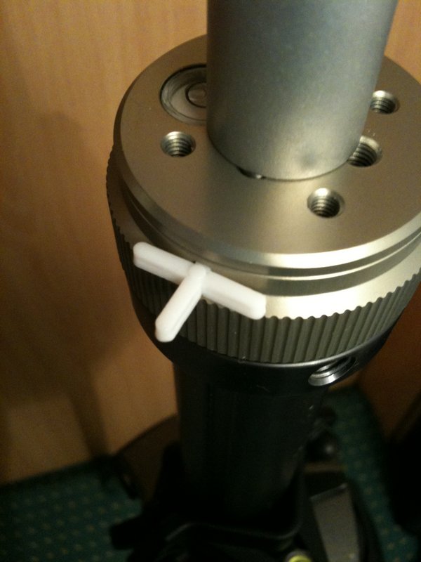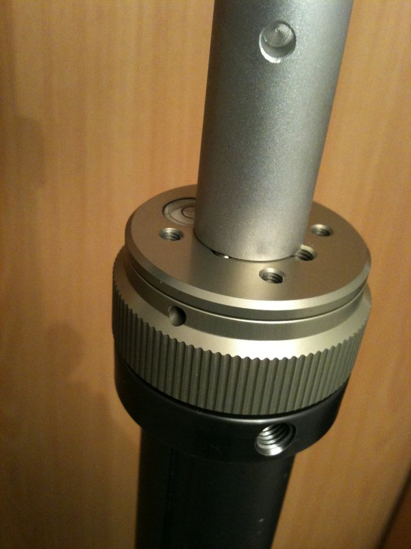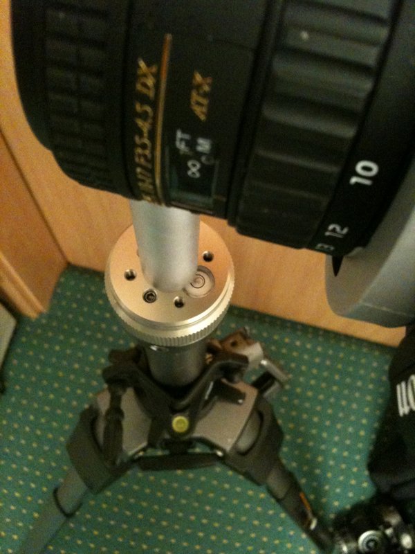 Dann habe ich noch das Handling mit dem Einbein probiert. Das ist nun absolut super. Dadurch, dass die im Minirotor eingebaute Libelle bei den Drehungen mitwandert, braucht man keine zusätzliche Polewasserwaage mehr am Einbein.