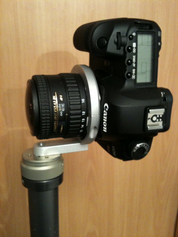 Nochmal vorab. Ich wollte einen Rotor für "nur" eine Kombi, nämlich meiner Canon 5DMk2/Tokina10-17 mit 4 Aufnahmen 12mm Brennweite einsetzen. Dafür sollte das Teil aber klein, leicht und genau sein, weil ich mit Template arbeiten will. Wichtig ist auch zu erwähnen, dass ich vorher nur Erfahrungen mit dem Manfrotto- Rotator hatte. Also wie sich die RD- Rotoren oder andere Produkte(Novoflex etc.) beim Einrasten verhalten, kenne ich nicht.