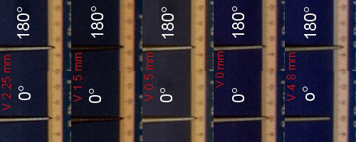 Im Seitwärtsschwenk kannst Du das noch ein Mal überprüfen. Wenn es nicht passt, dann noch Mal mit der Linealmethode prüfen, evtl. waren die Achsen etwas schief zueinander, oder Spiel bei der Justage. Auch da kannst Du die Nadel z.B. genau auf die Linealkante zeigen lassen, dann erkennst Du auch einen Parallaxversatz in die andere Richtung. Wenn Du jetzt 3 Bilder je 90° machst und die Spitzen nicht wegwandern, hast Du Deinen Adapter optimal justiert