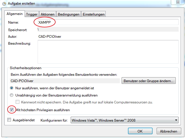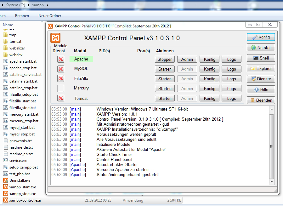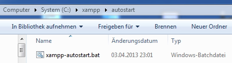 2. Eine *.bat Datei irgendwo (z.B. xampp Ordner anlegen) (Name z.B. autostart.bat)