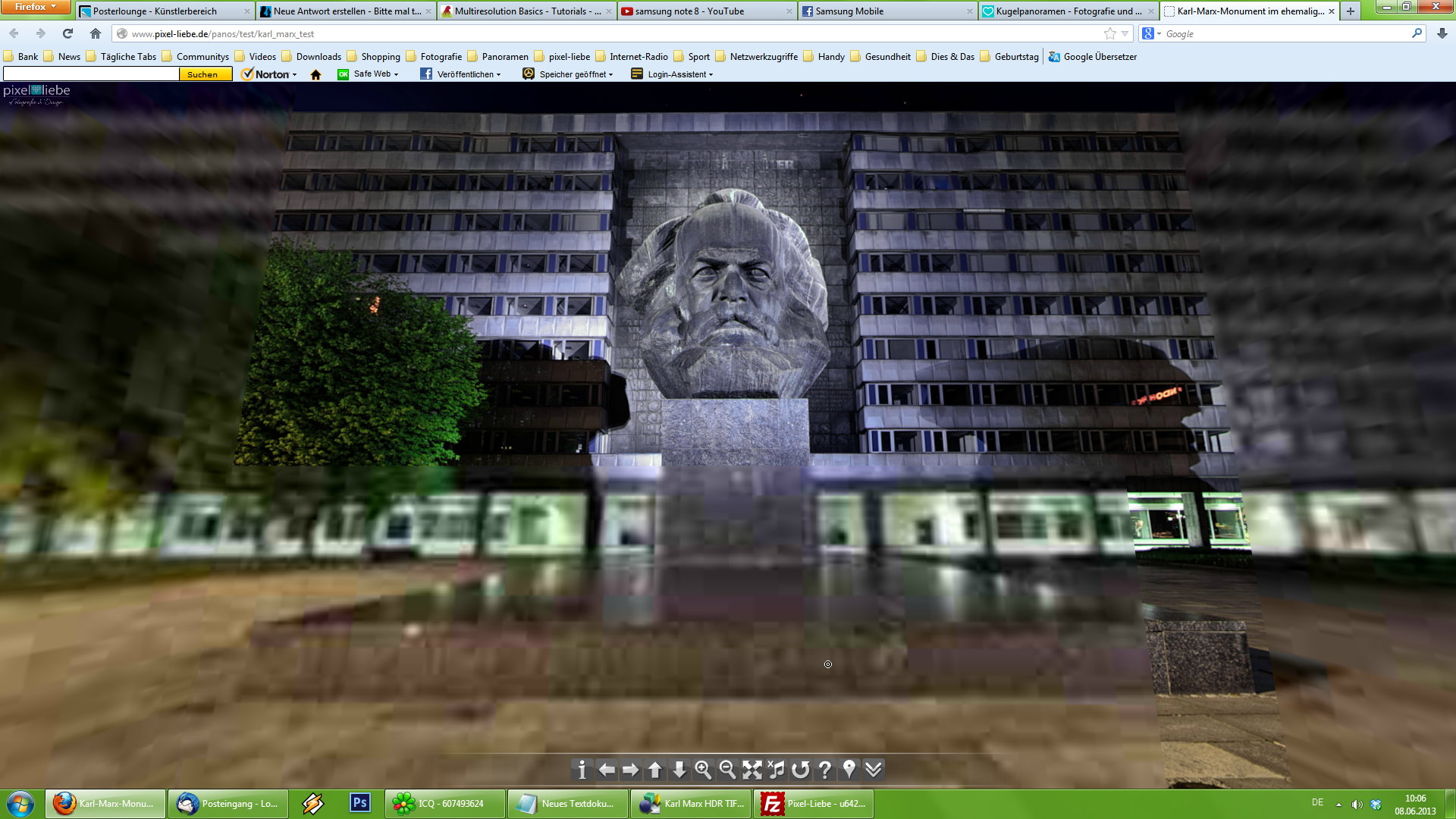 Auf jeden Fall hab ich beide Panoramen geladen, davor und dazwischen jeweils den Cache gelöscht, und genau nach 10! Minuten einen Screenshot gemacht (also wirklich mega langsam!).