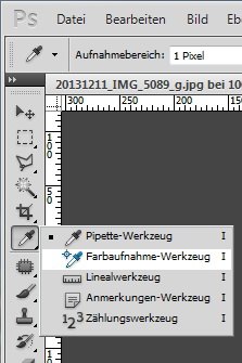 Jetzt ist der Groschen gefallen. In Photoshop`s Werkzeugleiste gibt`s da ein Farbaufnahmewerkzeug: