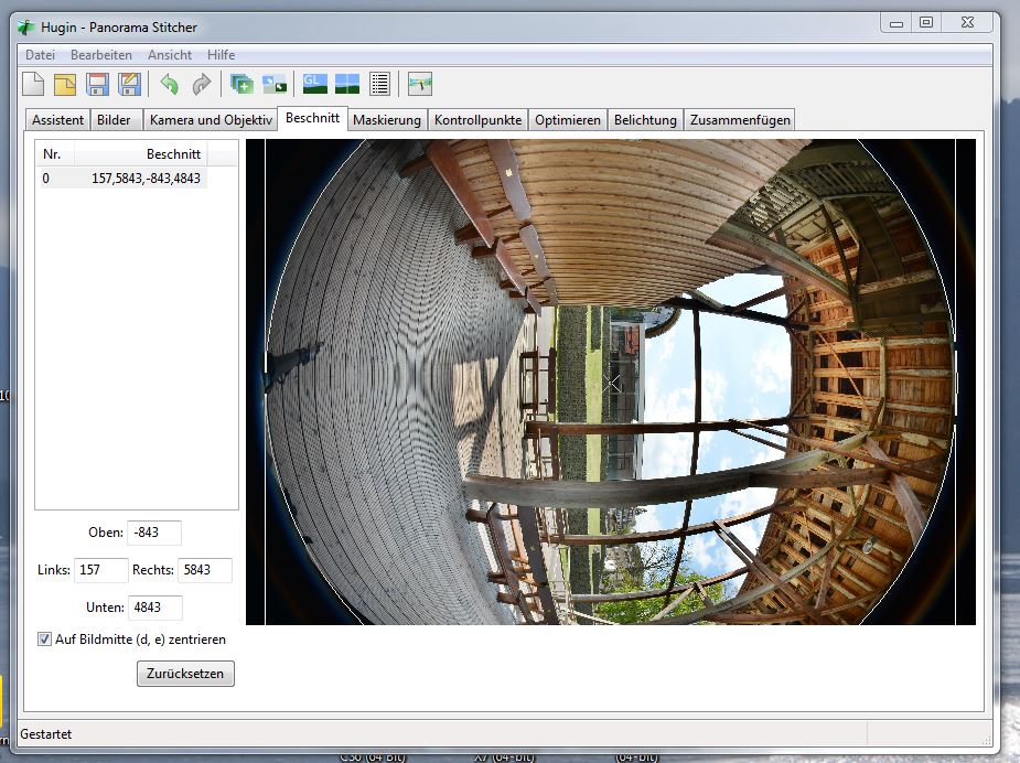Jetzt muss ich nur noch herausfinden, welchen Blender ich in Hugin zusätzlich einbinden kann der diesen Kreisel/Kegel halt nicht entstehen lässt