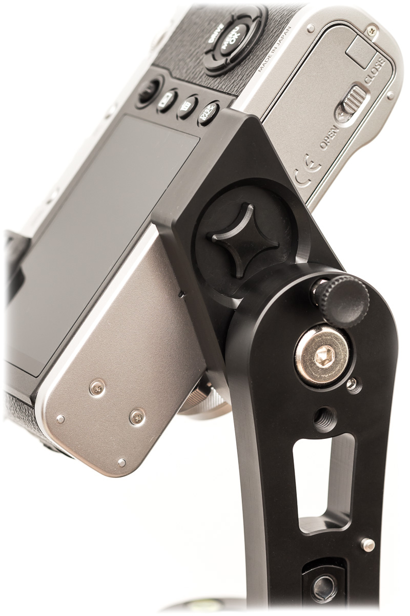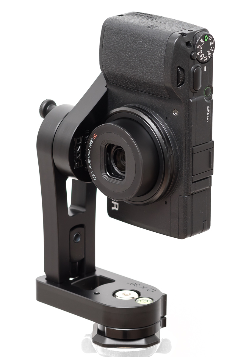 Soll es ein mehrreihiges Panorama sein, so hat der vertikale Schwenkarm Klickpositionen bei 0° (also die mittige Reihe), bei +-48° und bei +-84°.