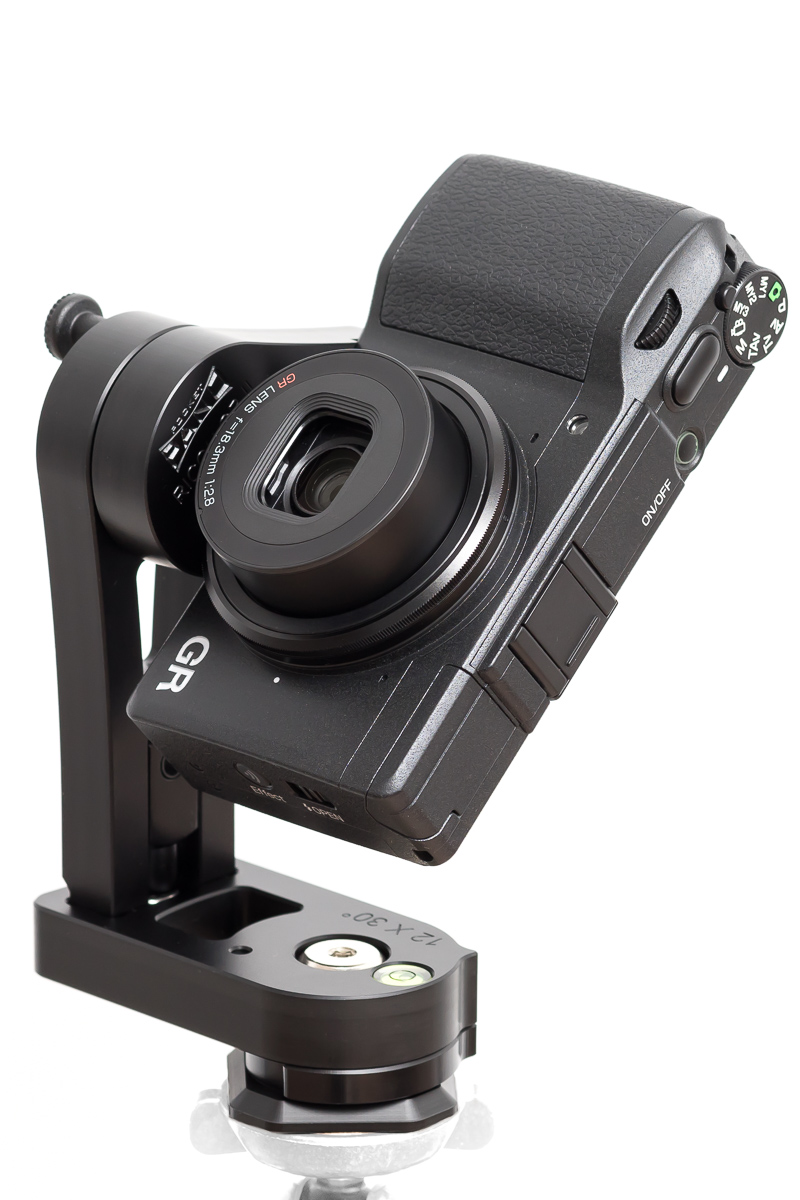 Die vertikale Rastung von 48° ist auf einen vertikalen Überlapp von ca. 30% ausgelegt. Wenn man mit weniger vertikalem Überlapp leben kann, kann man auch eine Zwischenposition weiterrasten (das wären dann 60° Schwenkwinkel und ein Überlapp von nur ca. 10%). Das bringt für ein vollständiges Kugelpanorama nichts (man spart sich nur das Zenitbild auf Kosten von potenziellen Stitchingfehlern), aber wenn man mal in der Vertikalen etwas weniger Bildwinkel benötigt, kommt man dann u.U. auch mal mit nur 2 satt 3 Reihen aus (z.B. eine Reihe bei -24° und eine Reihe bei +36° ergibt schon einen Gesamtbildwinkel von 360°x125°).