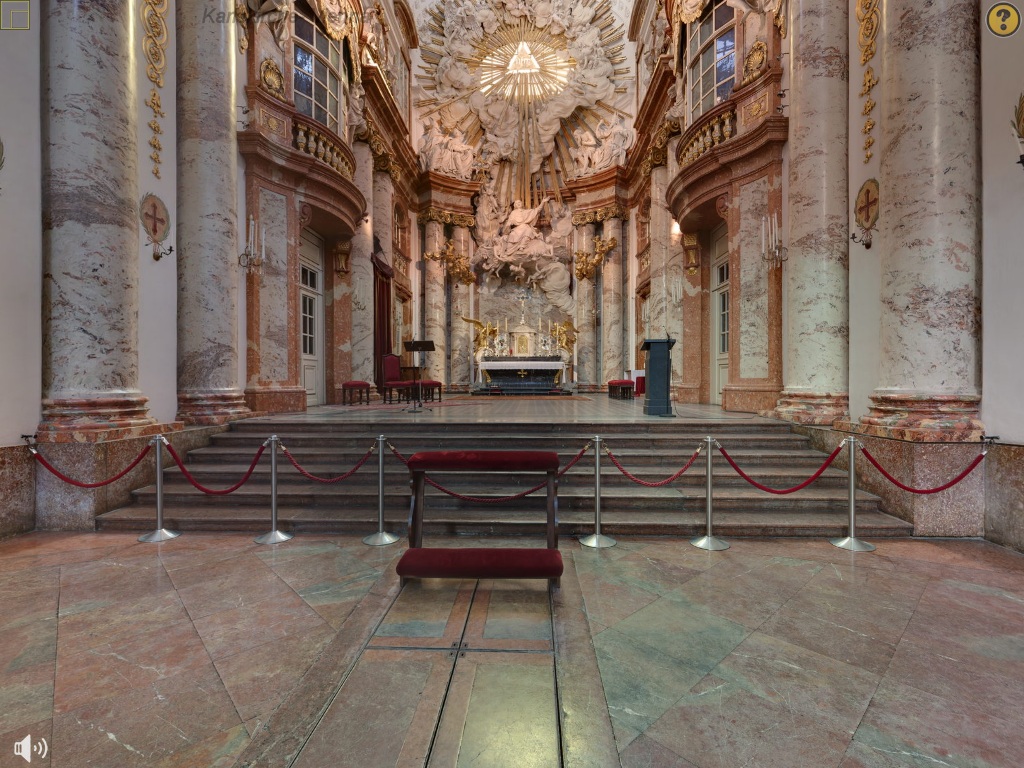 Wenn wir so das Panoramabild positionieren , das der Altar in der Mitte ( sekrechte Mitteachse des Monitors) ist , dann die Treppenlinie nicht ganz waagerecht leuft. Das ist richtig , aber wir sind immer am Anfang der Disskussion. Warum nur als richtige die Beobachtung wäre , die die Lage des Altas nur in der Mitte vorschreibt? Warum die Beobachtung ewas seitlich verschoben falsch sein sollte ?