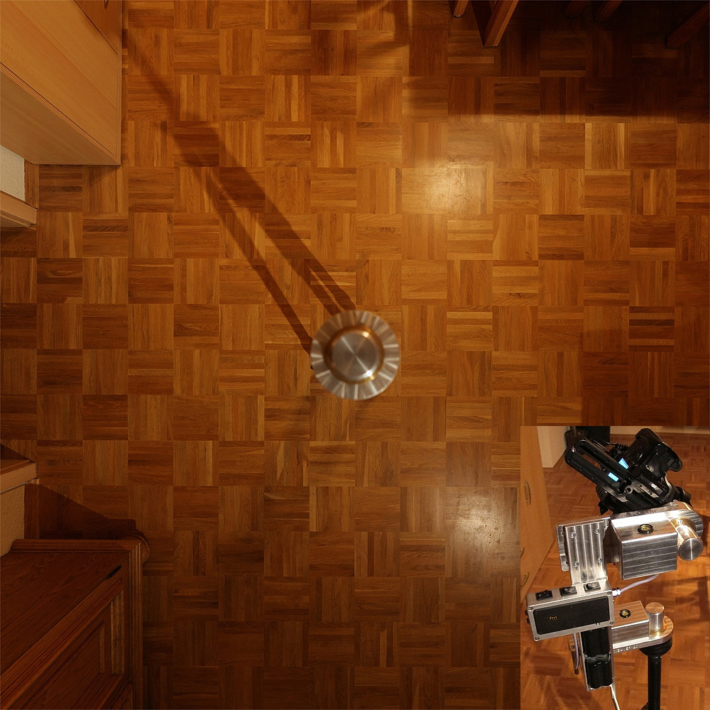 ...Linsenmitte jeweils 1,25m über dem Boden...Zur Relativierung: Ein Parkettfeld hat 16x16cm