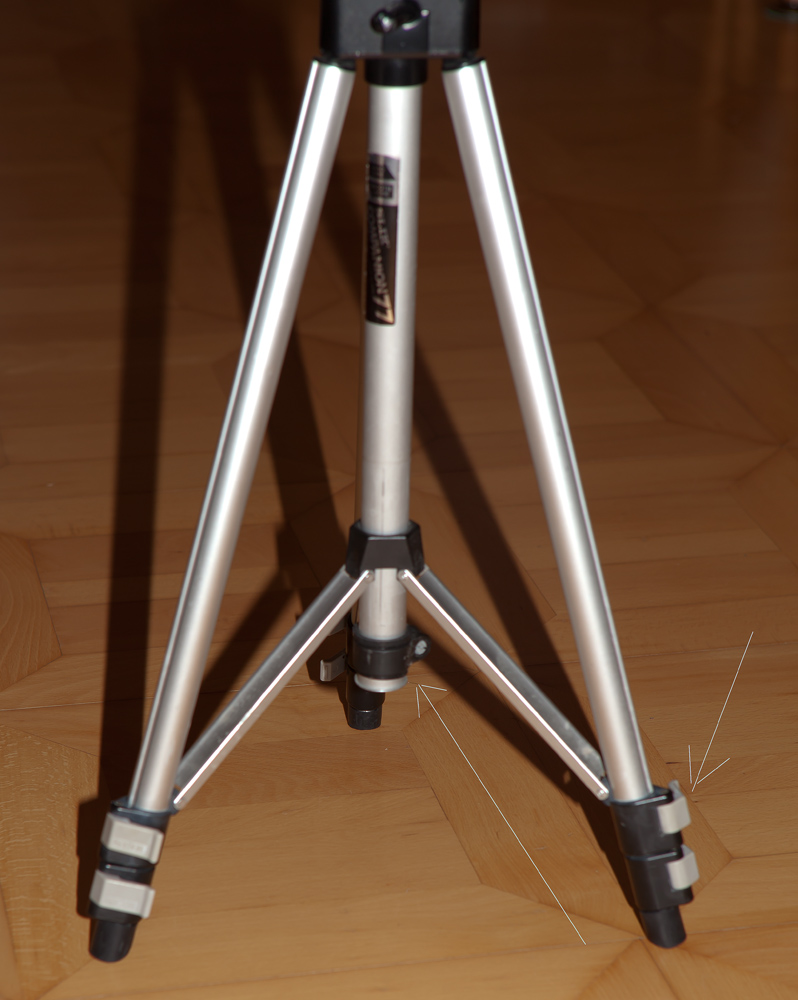 2. So kleinen stativ mit langer seule muss auch am boden ziemlich genau nivelliert werden... in der natur, wo boden selten eben ist, sollte man stativ nivellieren .