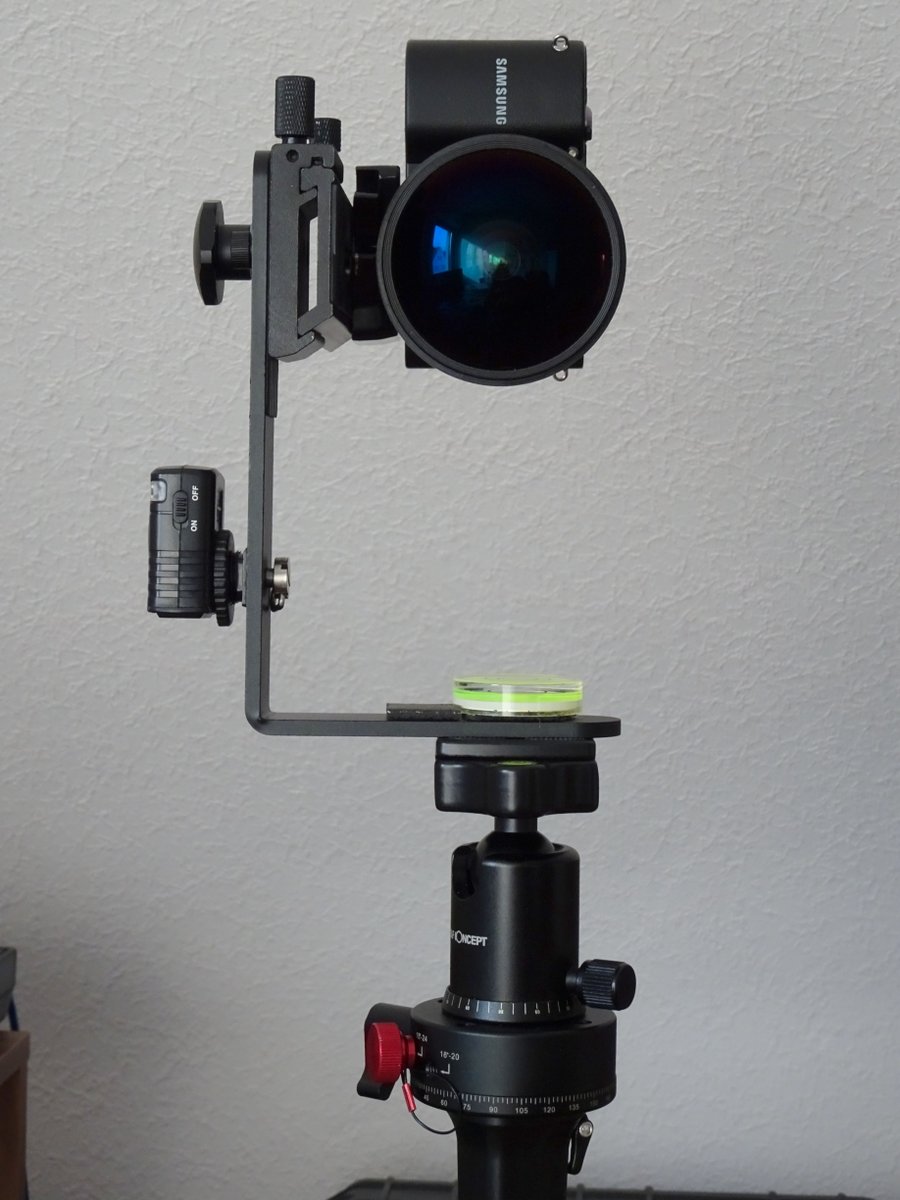 Ein anderes Thema mit möglicherweise großem Fehlerpotenzial ist z.B. auch der Freiheitsgrad zum Schwenken bei Deinem Standspinnenteil. Auch deswegen wären Seitenansichten Deiner Kombi interessant. Wo oder wie schwenkst Du eigentlich? Hat deine Standspinne einen integrierten Rotator oder so was wie ne Panoplatte zum Drehen oder machst Du das über einen aufgesetzten Kugelkopf?