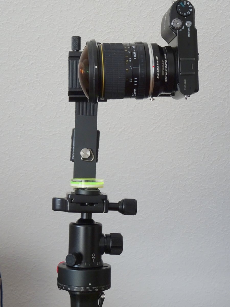 Nivellieren kannst Du übrigens im Nachhinein, das geht in ptGUI sehr präzise. Deswegen spielt das vorherige Nivellieren mit den Lügenbeutel-Dosenlibellen eine untergeordnete Rolle. Ich persönlich nivelliere mein Minimalbesteck (Monopod auf Ministativ) z.B. gern um sicheren Stand zu gewährleisten, weil große Auszugslängen bzw. Arbeitshöhe bei kleiner Standfläche (kleinem footprint) gefährlich werden kann.
