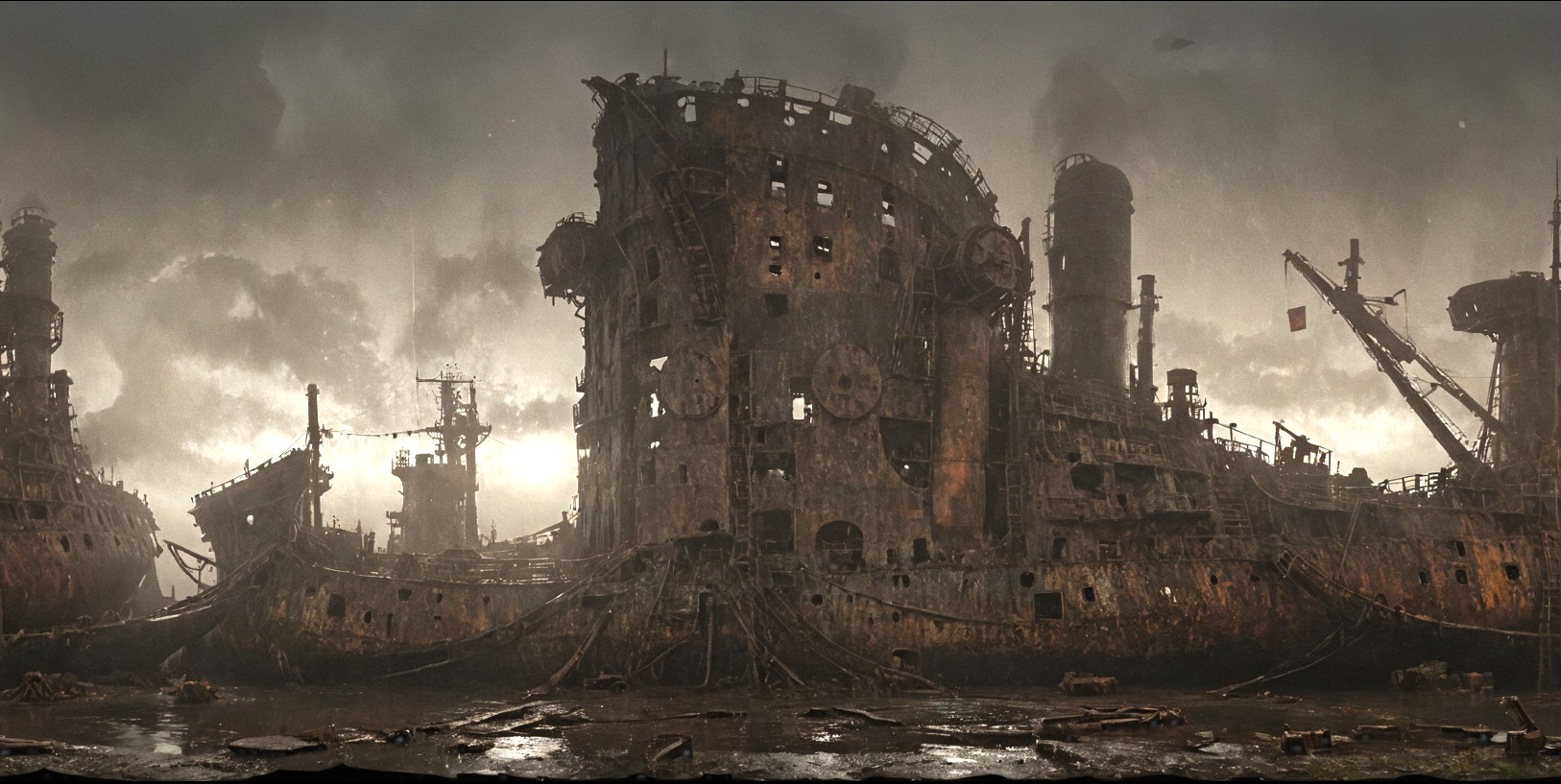 dark workshop with many tools, shelves, materials, many tools hanging on the wall and on the ceiling, iron working, welding, light reflections, artist at work, 360 degrees realistic equirectangular panoramic photo, 8k, high resolution, photo realistic, rich colors ,highly detailed,, <lora:Into_Darkness:0.7> <lora:Cloudify-SDXL:1>