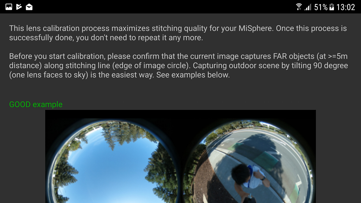Wie kriegst Du eigentlich die beiden Halbklugeln am einfachsten in den MiSphere Converter? Geht das nur über den Umweg per Micro-SD-Karte und PC oder auch direkt per Funk/Handy?Die Kalibrierung wird mit den beiden Halbkugeln durchgeführt, nicht im fertigen Pano!