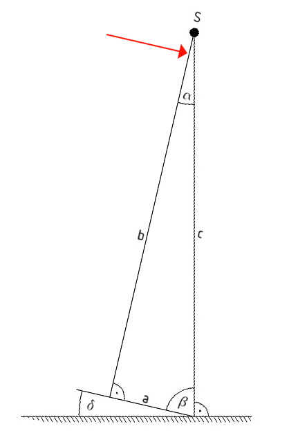 Die ganze Skizze (inclusive Boden) habe ich dann so schräg gestellt, dass die Säule (b) wieder senkrecht steht.