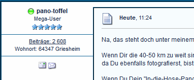 Na, das steht doch unter meinem Namen, links neben jedem meiner Beiträge.