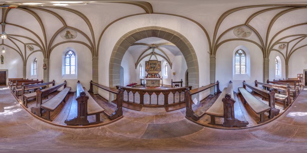 Wunderkammer. Das Pano ist allerdings auch mit dem 14-24 bei 19 mm aufgenommen, was das Bild ohnehin größer macht, weil viel mehr Bilder notwendig sind, um die Kugel komplett zu bekommen. Das Bild selber war dann 26134x13067 Pixel groß. In PTP importiert und dann als html Dateien für die Onlinepräsentation exportiert sind alle Dateien zusammen in Qualität 9 von 12 ca 80 MB groß. In Qualität 12 von 12 sind es dann ca 480 MB.