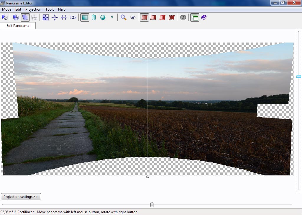 PS: Anpassungen kannst Du im Panoramaeditor bei dieser Projektionsart auch mit den Reglern unter "Projection Settings" und dem 123-Button vornehmen.