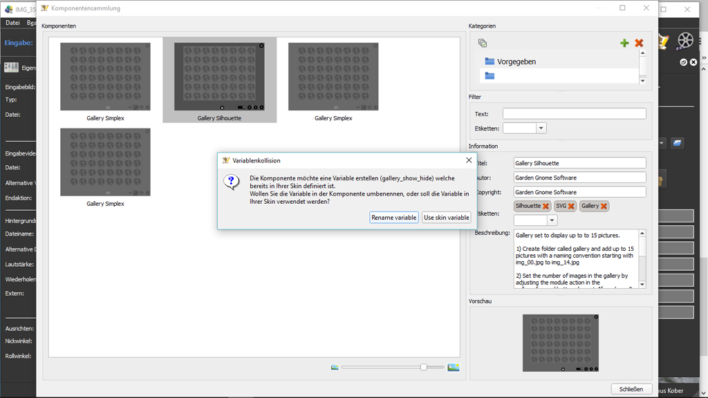 Doppelklick Gallerie Silhuette, rename Variable und schließen