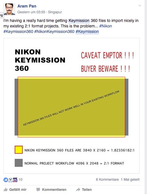 Jetzt habe ich zum halben Preis eine Samsung Gear 360, wo immerhin durch die Aufnahme jedes Sensors für sich ein besseres Angleichen von Farbe und Helligkeit möglich ist. Das kleine Display an der Kamera ist sehr hilfreich, man kann die Kamera gut ohne Handy bedienen. Tests stehen noch aus, die Qualität ist wohl der Nikon vergleichbar. Die Gear Kamera kann ich über mein gerootetes Note 2 verbinden, an meinem Mac mit dem Programm Android Datenübertragung verbinden.