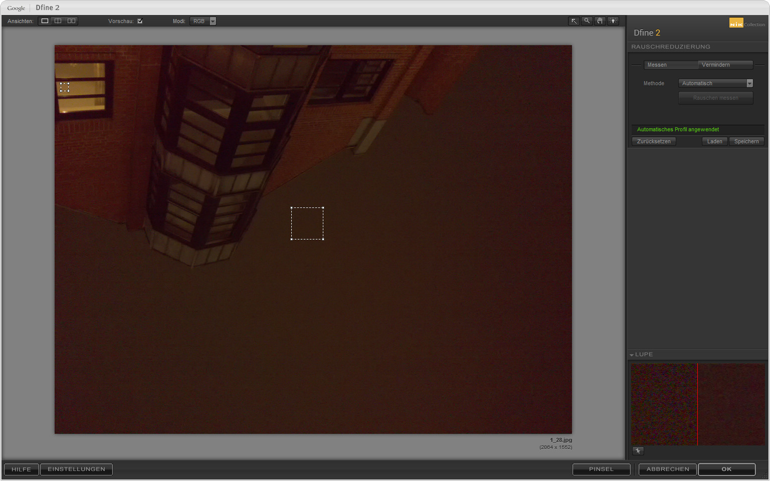 Das so gefundene Rauschprofil der Kamera kann gespeichert und auf alle weiteren Bilder angewendet werden.