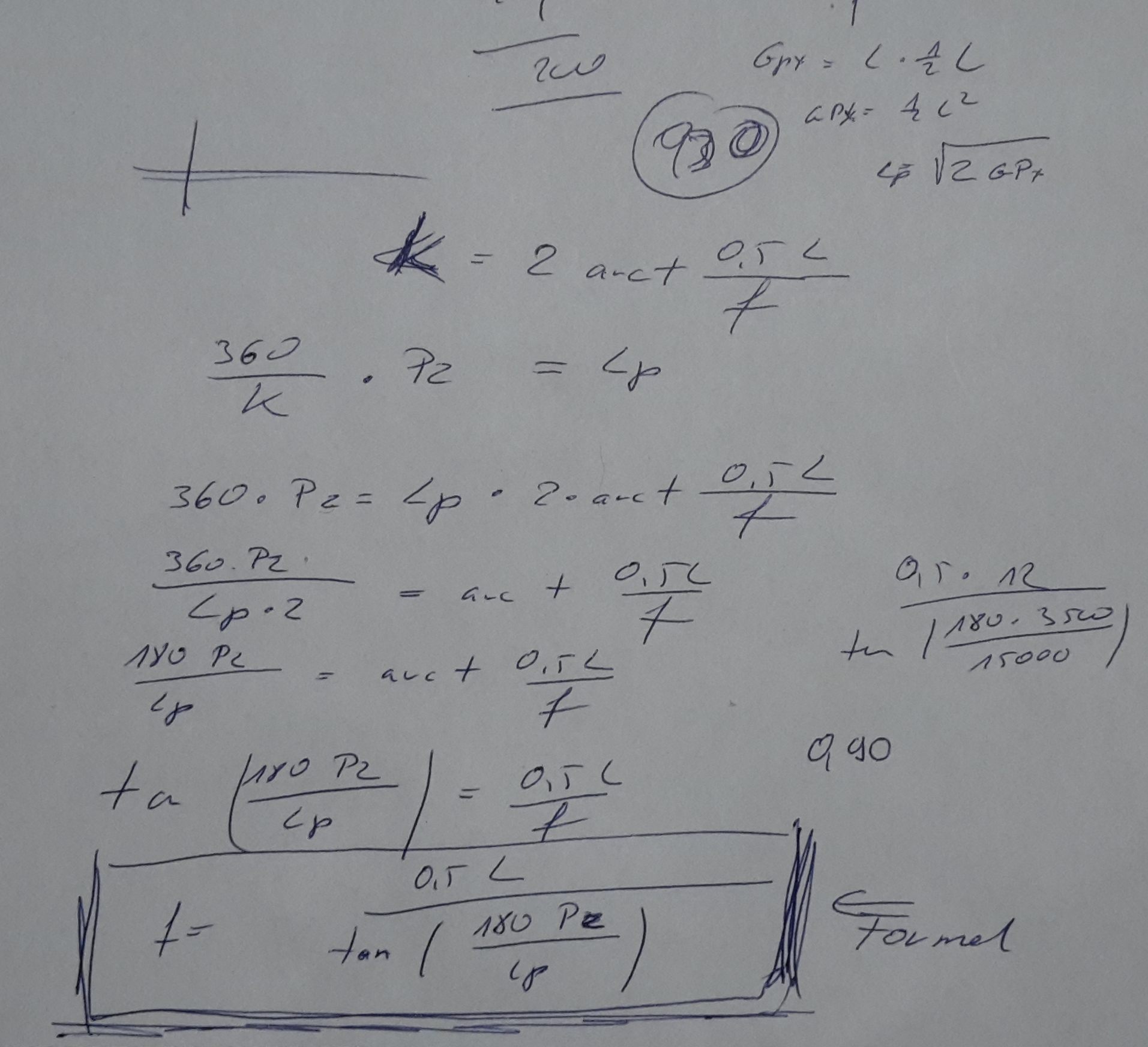 f=0,5*L/tan(180*PZ/Lp)