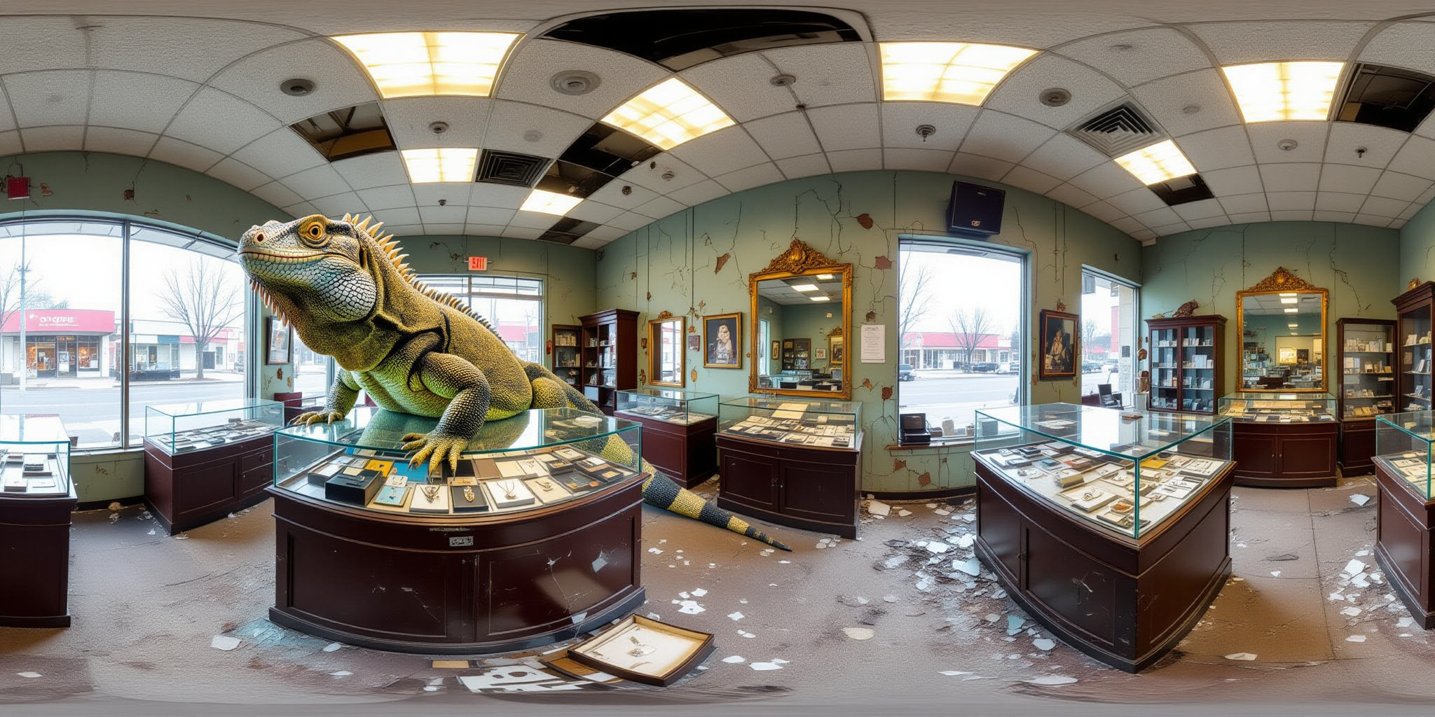 Wenn man die Auflösung verdoppelt, verdoppeln sich leider auch die Bildelemente. Es lungern dann zwei Warane auf den Vitrinen rum.