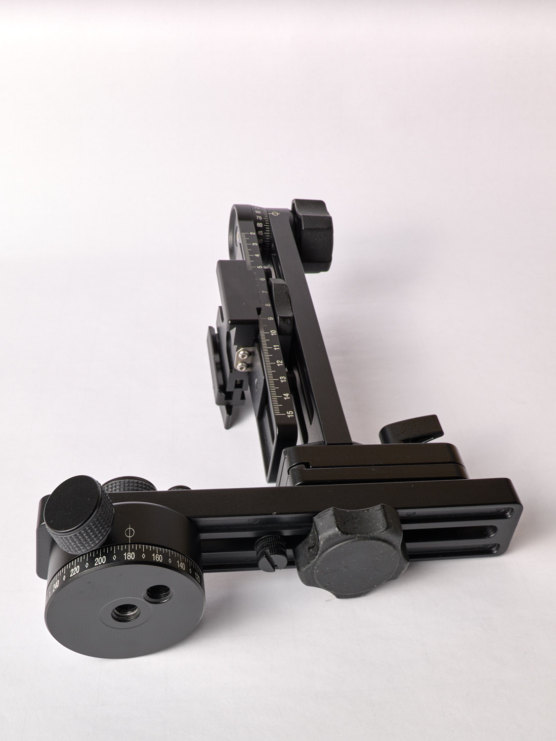 - Kameraschlitten mit Klemme im ARCA-Style mit Stoppern für wiederholgenaue Montage der Kamera.