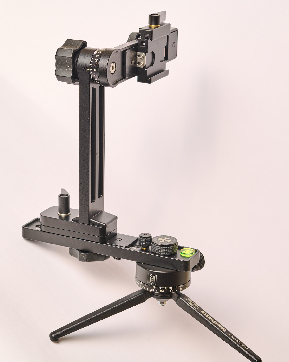 - Nadir-Adapter - Ermöglicht einfache und schnelle Aufnahmen des Bodenbildes durch Umdrehen der Kamerasäule um 180° nach außen bei seitlich versetztem Stativ.