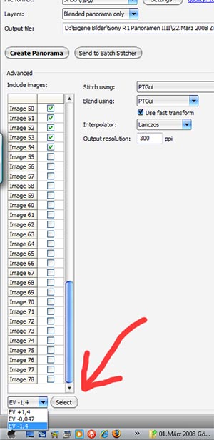 Das ist so richtig. Wie es bei Wind aussieht kann ich dir nicht sagen, das Problem hatte ich noch nicht. Malum kann bestimmt mehr dazu sagen. Menschen hasse ich sowieso.Du montierst also z.b. die ausgebrannten Lichter in PS, und erstellst damit zB. 3 - 4 unterschiedliche Belichtungsreihen, die Du dann mittels template in PTGui - als 3 - 4 equis ausgibst? Und dann in PS montierst - richtig? Wie sieht dann das bei Wind und Bäumen aus?