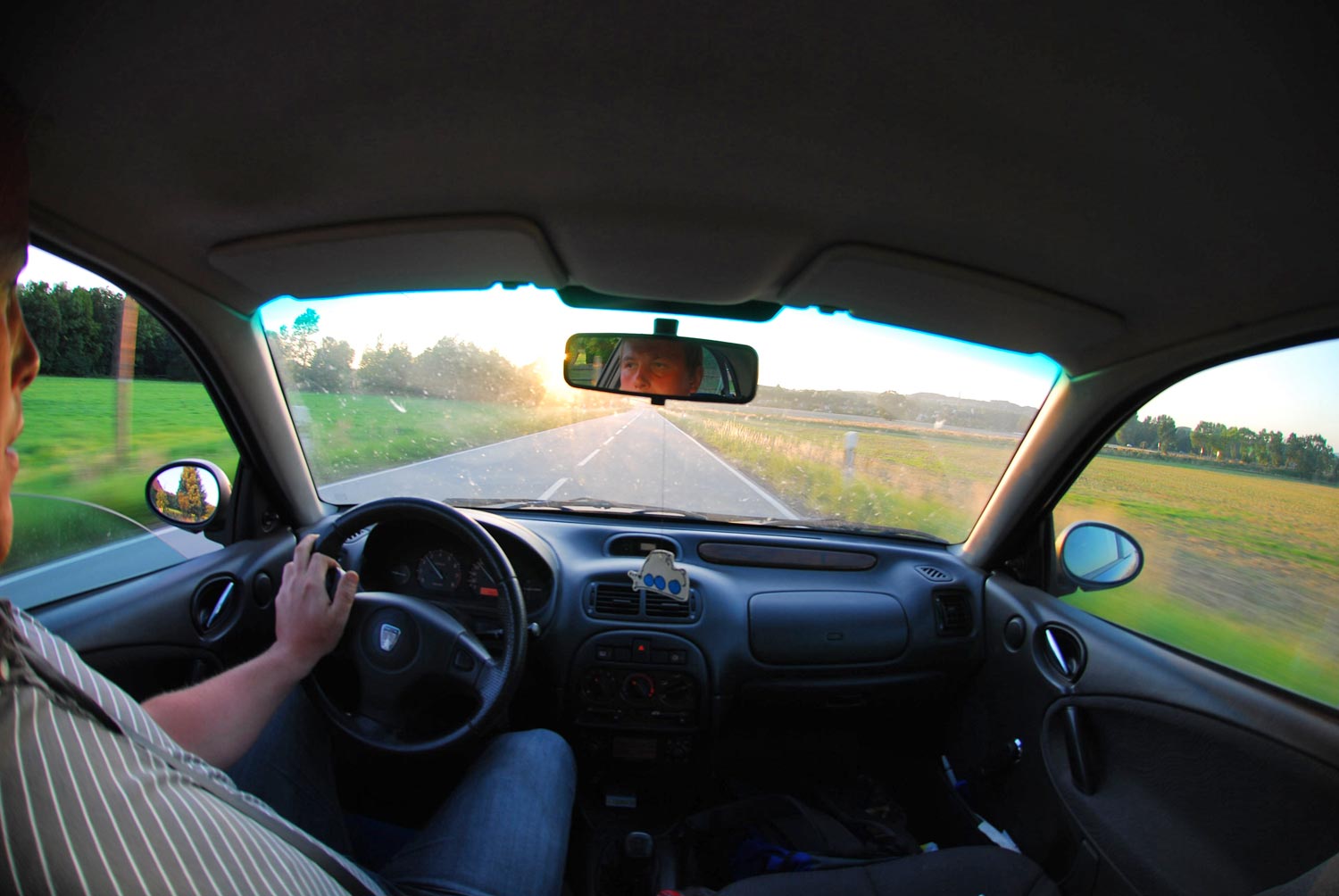 aber nun mal im Ernst, rechte Hand am Fernauslöser und die linke Hand mal eben für ´ne 1/200 sek vom Lenkrad genommen und das rechte Foto ist eine Ausschnittvergrößerung aus dem linken Foto.