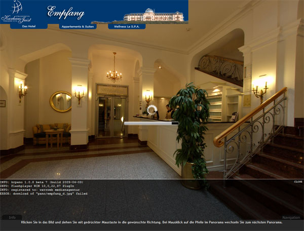 Hast noch ein Bild vergessen. "ERROR:download of "pano/empfang_f" failed" Nachtrag: da fehlen überall Bilder... Gruß Bruno