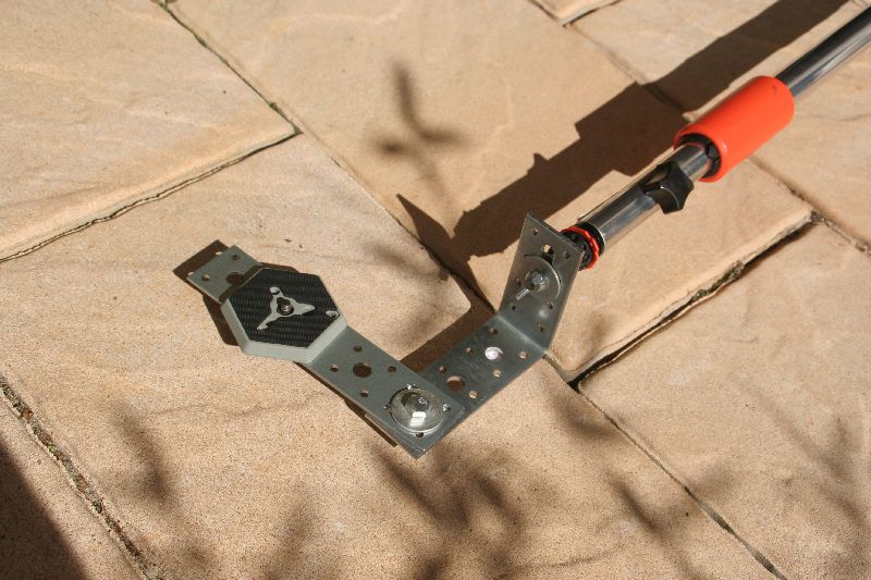 Die zwei Bleche sind sehr leicht und trotzdem stabil. Wenn das Objektiv nicht zu lang ist, kann man das ganze sehr schön auf der Stange halten.