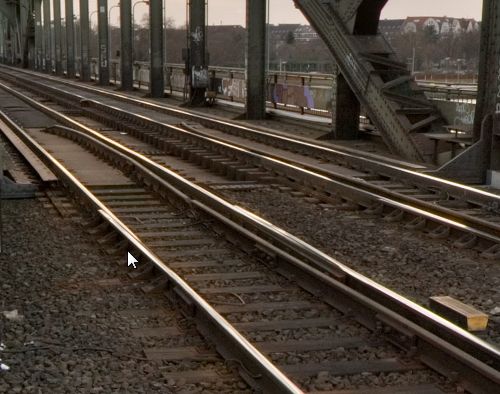 Das gefällt gut, es gibt viel zu sehen.....dachte doch erst ich hätte einen Fehler (Pfeil) an den Schienen zur Einfahrt der Brücke gefunden,