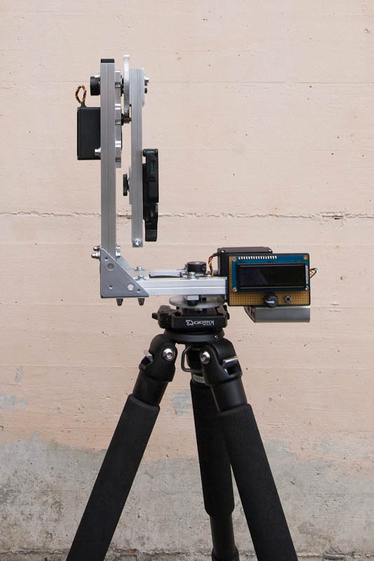 Arduino als Basis, allerdings mit Stepper und Getrieben. Zum Einstellen hab ich dann noch einen Nunchuk von der WII drangehängt.