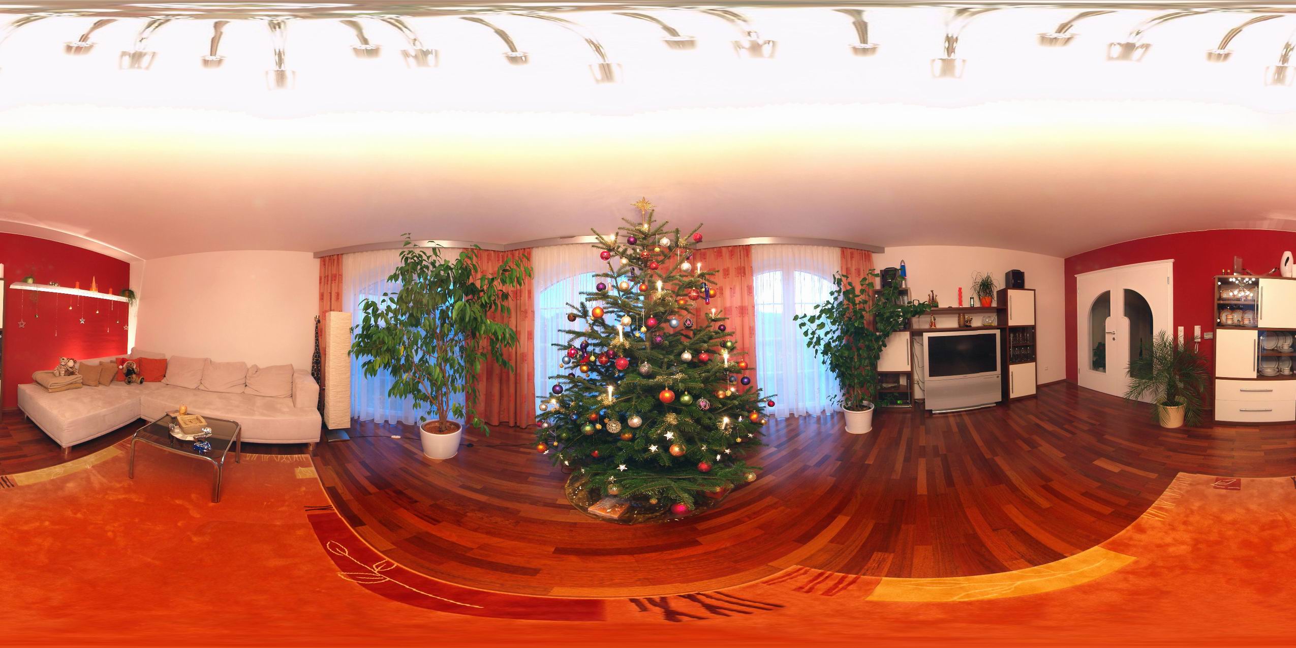 Habe gerade mein erstes Kugelpano fertiggestellt! Mit meinem selbstgebastelten Nodalpunktadapter meiner Oly E-500 und 8 Peleng 8mm Fotos bei F8 (6 hochkant in Reihe + Nadir und Zenith). Gestitcht mit HUGIN. Das eingestellte Bild ist unbearbeitet. Ein paar kleine stitching Fehler im Fernseher... Aber das sollte kein Problem sein.