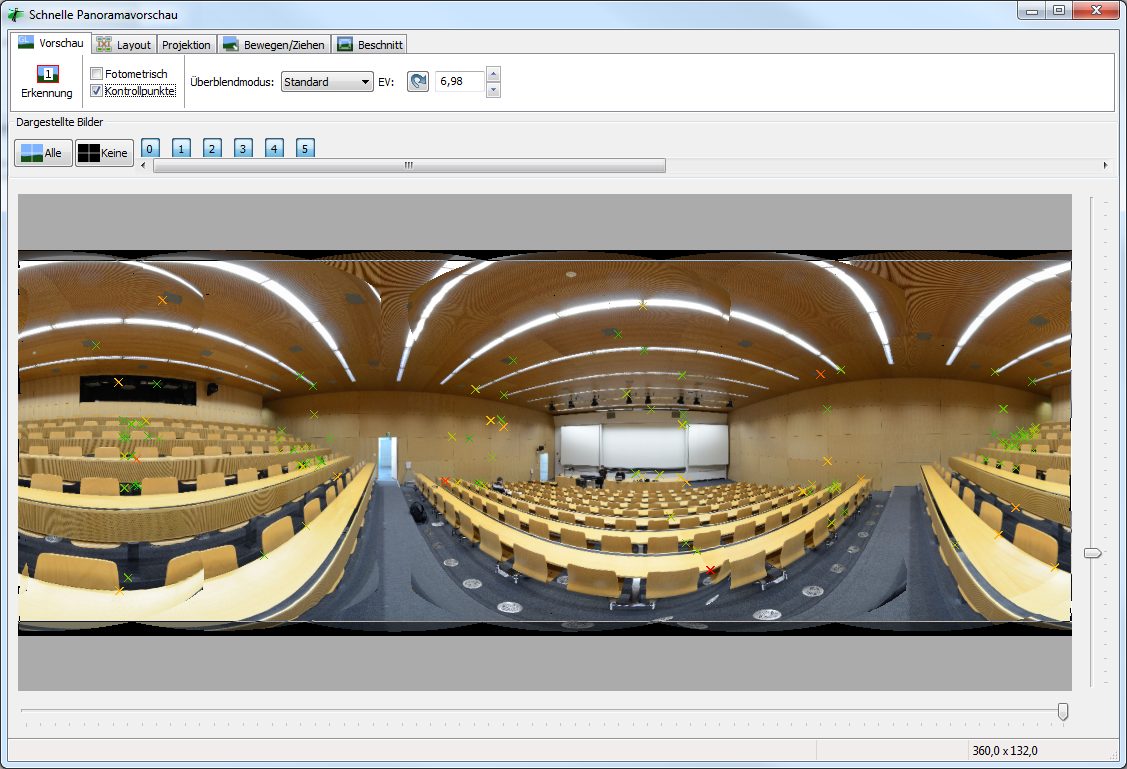 Beim Versuch, mit Hugin auf Windows ein Kugelpano eines Hörsaals zu stitchen, bin ich schon beim Aligning kläglich gescheitert.
