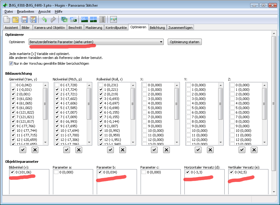 - Bei Hugin stürzt bei mir der Optimizer bei gewissen Konfigurationen ab.