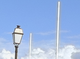 Korrektur der CA's beim 10,5er Fisheye mittels Autokorrektur des Farbquerfehler, jedoch nicht des Farblängsfehlers in Nikon CNX2. Die grauen Ränder an Wolken und Fahnenmasten sind nun verschwunden.