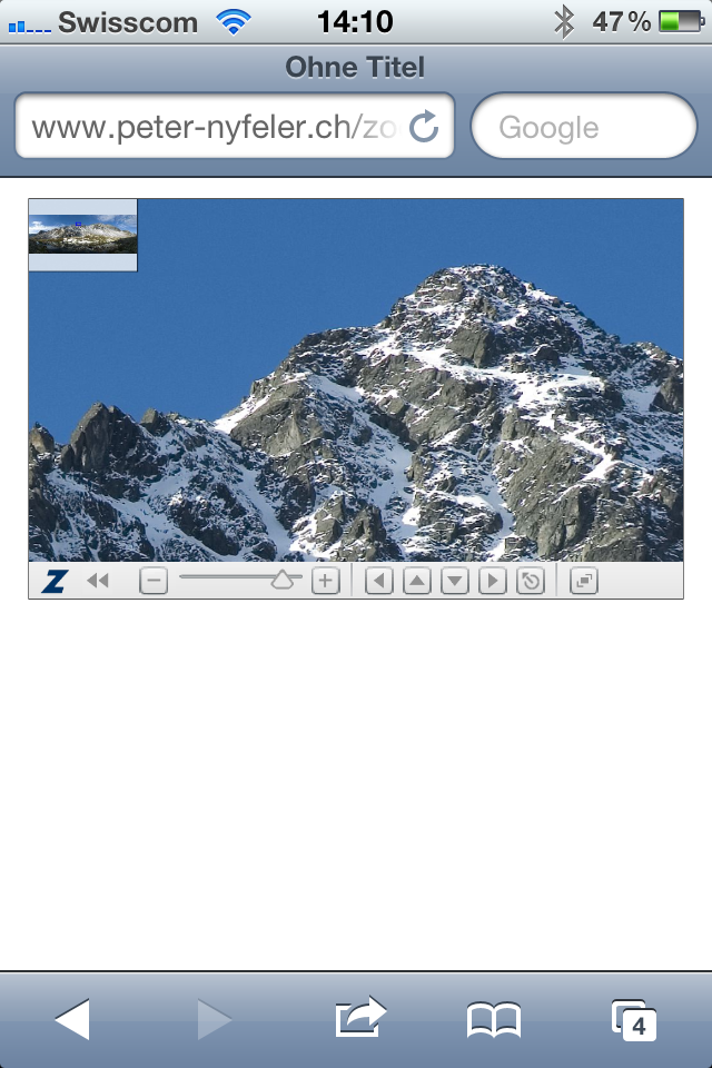 Habe die Beispiele auf der Seite von zoomify mit einem iPhone 4 über das Handy-