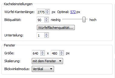 Ich lade das Equi ins Pano2VR und stelle nur die Qualität auf 86-88 sonst nichts - ich habe früher viel rumgeregelt aber meine Ergebnisse sind mit der Grundeinstellung (auch für die Würfelkantenlänge) am besten.