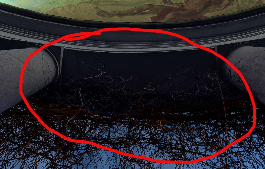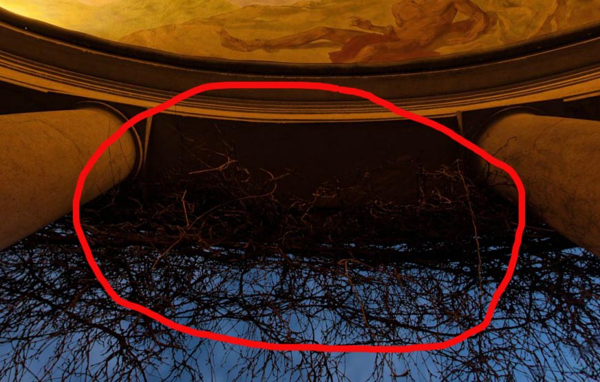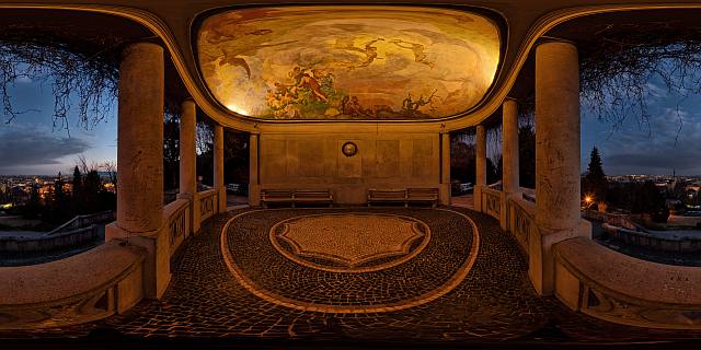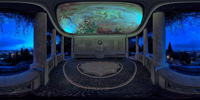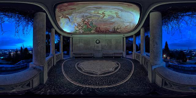 Als Schmankerl wäre es interessant gewesen, die Hintergrundmusik an den Blickwinkel anzupassen. So könnte ich mir vorstellen, dass beim Blick nach oben auf die Malereien die klassische Musik gespielt wird und beim Blick an die "Schmierereien" an den Säulen ein moderner Rap abgespielt wird, um den Kontrast noch deutlicher zu machen.