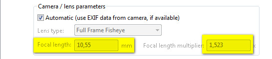 Sobald ich align images starte, wird der Wert auf 10,55 mm korrigiert. Auch der Crop-Faktor ändert sich auf 1,523. Ist das nun so zu verstehen, dass es sich hierbei um herstellungsbedingte Abweichungen handelt? Des Weiteren irritiert mich die Bezeichnung Full Frame Fisheye. Ich setze ja ein 10,5er FE an einer Crop-Kamera ein.
