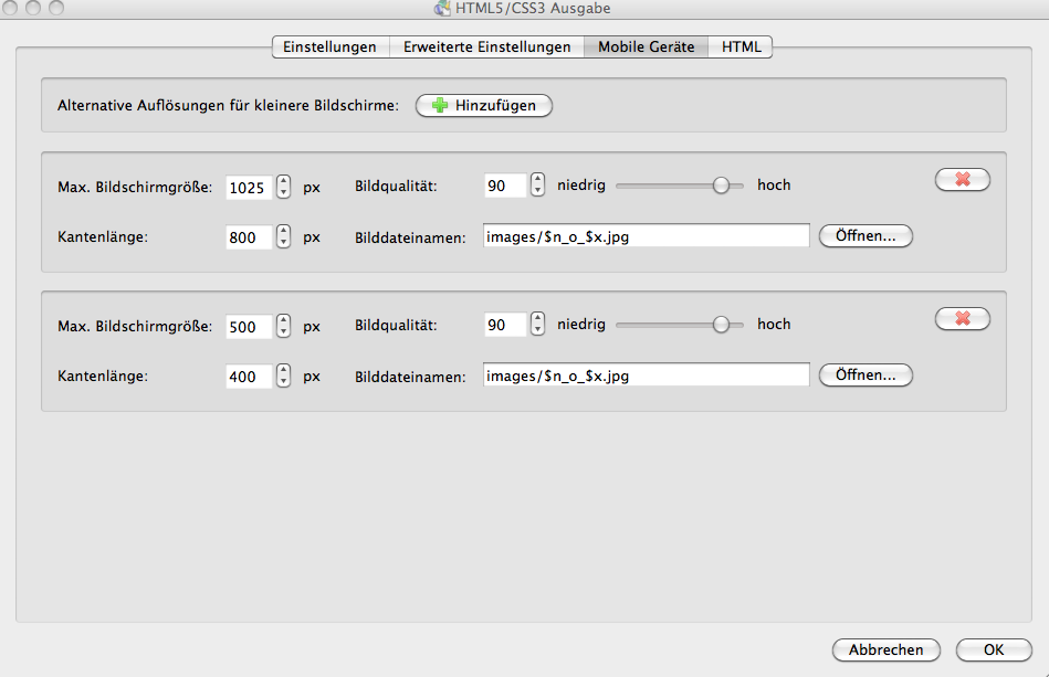 Im vorletzten Bild bei den Einstellungen für Mobile Geräte würde ich bei