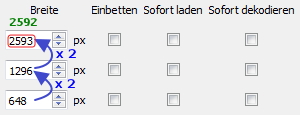 Begonnen wird wohlgemerkt mit Breite 2593. Die folgenden 2 Ebenen werden ja jeweils durch 2 geteilt, wären also theoretisch 1296,5 und 648,25.