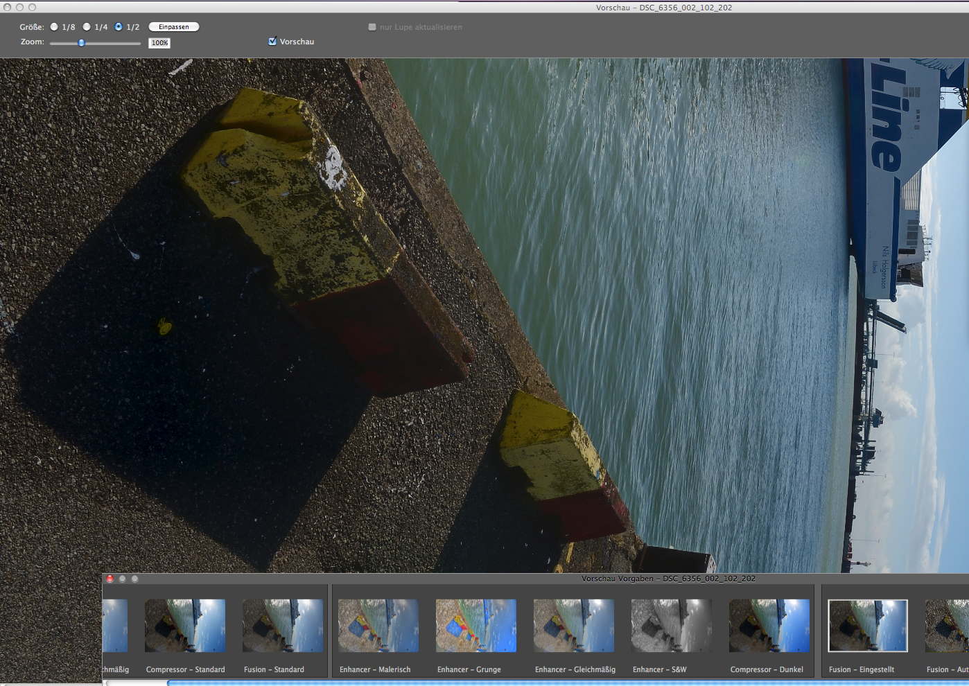 . Ich habe deine Datei mal durch LR4 gejagt und das Ergebnis ins SNS geschmissen und die generierung der Pseudo-HDR-Reihe gänzlich dem SNS überlassen und das ist herausbekommen. Ich finde die Pseudo HDR Version sehr interessant, weil sie im Schatten auf dem Teer mehr Zeichnung und Kontrast generiert.