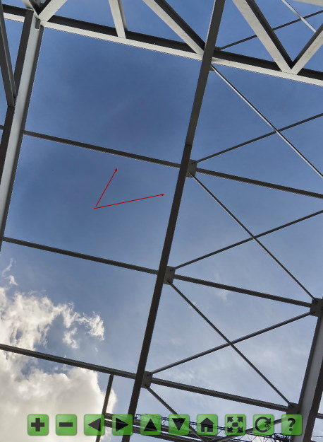 Der Pfeil war schon immer da, habe ihn jetzt farblich etwas verändert ( jetzt vielleicht zu auffällig) und nach oben versetzt.Gestern hatte ich das Außen-Pano auch angeschaut, und dachte: gut belichtet, sauber gestitcht, alles im Lot, aber das Motiv nicht sooo aufregend, und tschüß.