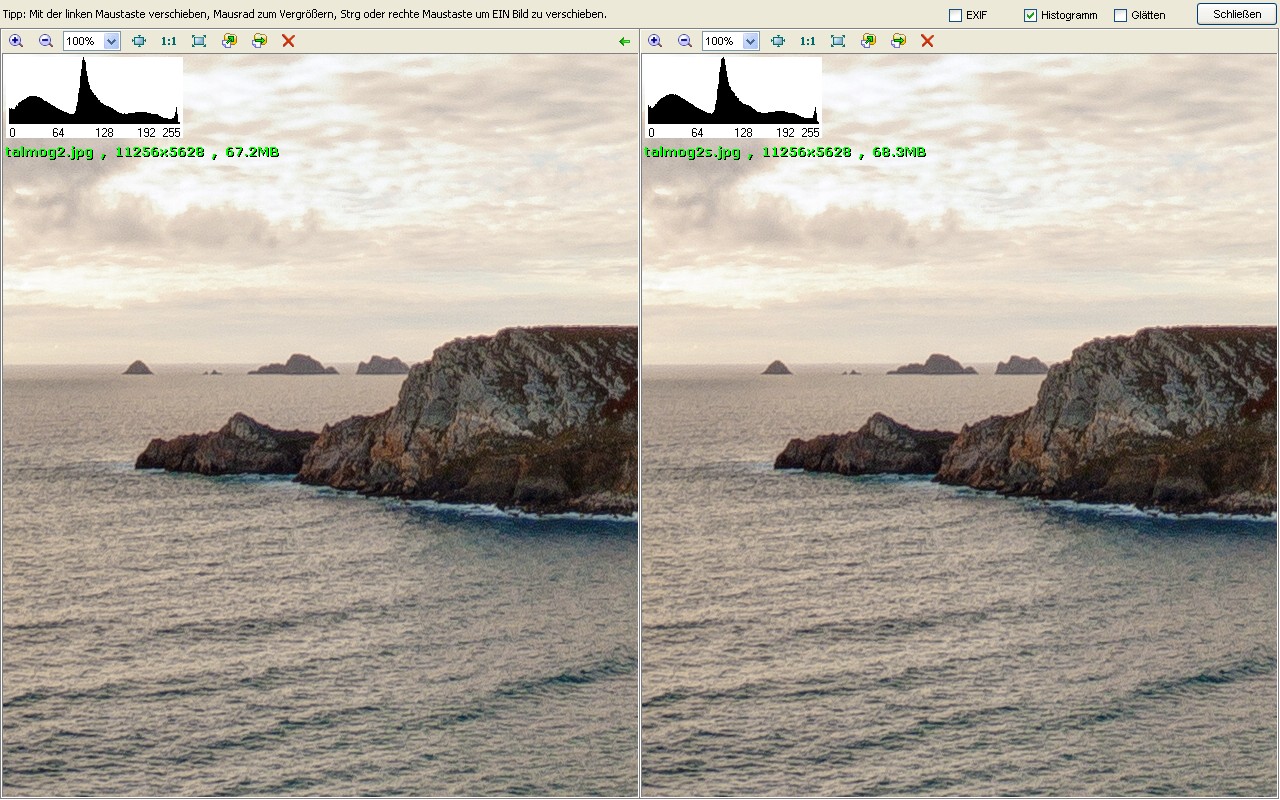 Links Ausschnitt aus dem Equi mit Standardeinstellung, rechts mit sharp.