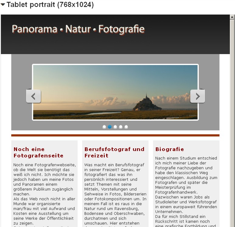 Es gibt einen kleinen Breitenbereich nachem das 3-spaltige auf das einspaltige Design wechselt, da ragt das Menü über den grauen Rahmen von Deinem Bild hinaus. Danach wird es etwas eigenartig 4 zu 2 aufgeteilt und dann 3 zu 3.