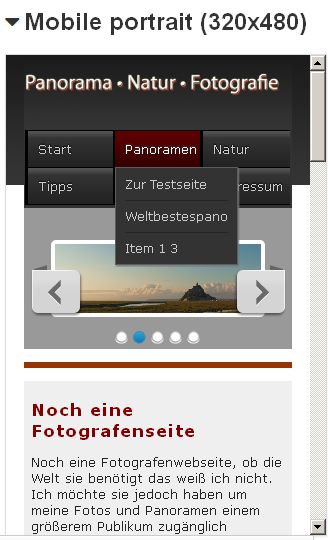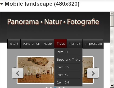 ... Sicherlich ist das Menü nicht perfekt, da sollte z. B. das rechte Submenü von rechts nach links aufgehen um nicht im "Smartphonerand" zu verschwinden....