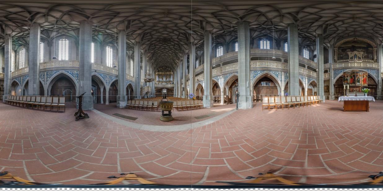 Ausprobiert und hier das Ergebnis ohne weitere Behandlung - also nur was PTGui automatisch nach Einstellung der richtigen Objektivwerte daraus gemacht hat.