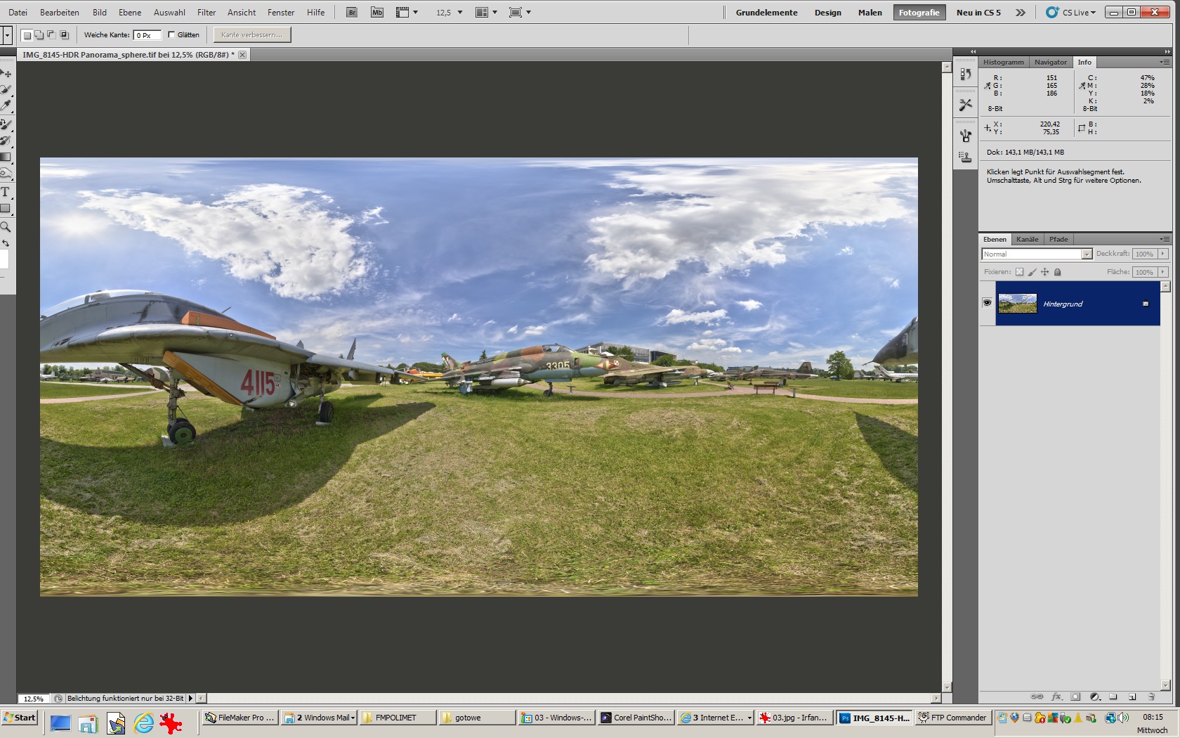 Übrigens habe ich bewusst nicht die Aufhellfunktion von ACR genutzt, weil sie die Bilder um die Sonne herum sehr stark aufhellt, so dass der gegenüberliegende Teil immer sehr dunkel erscheint.